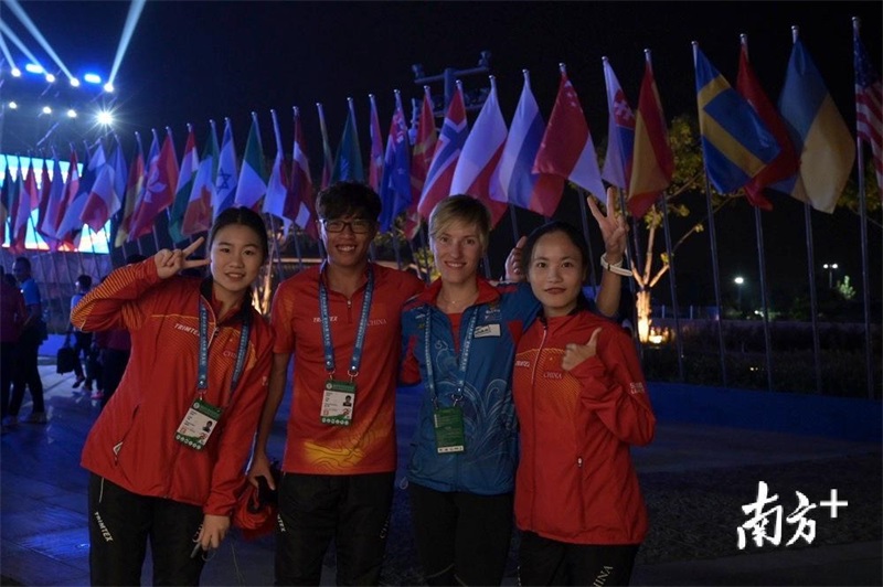 圖為中國隊隊員與外國選手合影。