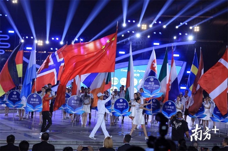 首先進行的是各國運動隊入場儀式,圖為中國隊入場。