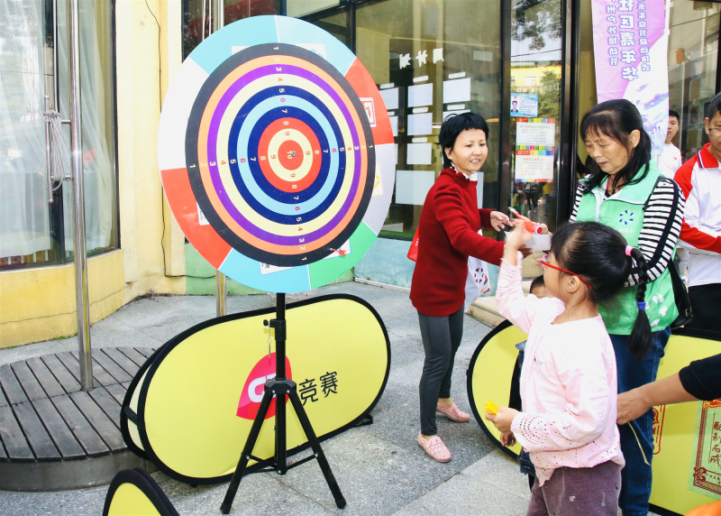 在分站活動啟動儀式上,廣州市廣播電視臺競賽頻道陳靖暉副總監(jiān)為南石頭街道紙南社區(qū)陳漢輝主任頒發(fā)了第五屆廣州戶外運(yùn)動節(jié)體育進(jìn)社區(qū)嘉年華系列活動優(yōu)秀社區(qū)獎。本次活動按照常規(guī),設(shè)置了乒乓球擂臺賽和毽球擂臺賽以及6大老少皆宜的體育運(yùn)動游戲攤位,參與的街坊可以憑集點(diǎn)卡的點(diǎn)數(shù)兌換精美的禮品。讓記者驚訝的是,街坊們已經(jīng)熟知“體育進(jìn)社區(qū)嘉年華”活動,說是一直有留意這個活動,這周終于把它給“盼”來了!一直生活在紙南社區(qū)的陳伯告訴記者:2001年,南石頭街道就獲得過“廣東省民族民間藝術(shù)之鄉(xiāng)”的稱號,街坊們都擁有文藝基因,文體不分家,這次體育進(jìn)社區(qū)來到南石頭,必會擦出新火花。