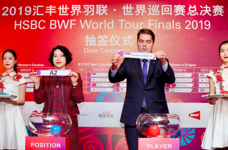 中國隊在強勢項目女單、女雙和混雙實現(xiàn)了滿額參賽,在男單和男雙項目各有一人/對主力入圍。今天上午,廣州總決賽抽簽儀式在官方酒店花園酒店舉行,世界羽聯(lián)主席保羅·埃里克·霍耶、中國羽協(xié)主席張軍、廣州羽協(xié)主席林燕芬、雅典奧運女雙冠軍楊維、中國隊頭號混雙鄭思維/黃雅瓊等出席儀式?;粢H手抽出男單諶龍與安賽龍同組,屆時B組將上演“雙龍會”。