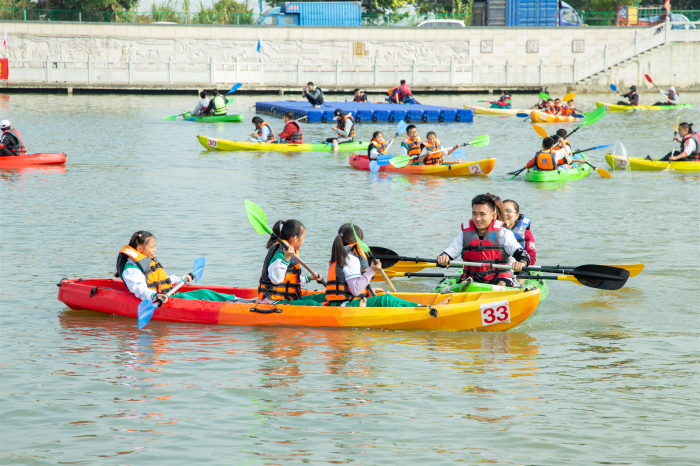 與此同時(shí),活動(dòng)現(xiàn)場(chǎng)還同步舉辦了皮劃艇市民體驗(yàn)日活動(dòng)。皮劃艇體驗(yàn)區(qū)域內(nèi)提供了安全又趣味豐富的各式活動(dòng),并配備專業(yè)教練進(jìn)行教學(xué)指導(dǎo),讓現(xiàn)場(chǎng)市民在體驗(yàn)起航前,掌握相關(guān)水上運(yùn)動(dòng)知識(shí)。寬闊的水域上多艘競(jìng)渡,潑水混戰(zhàn),形成了一條獨(dú)特的風(fēng)景線,引得岸上圍觀的市民也紛紛報(bào)名參與,感受秋日陽(yáng)光下與珠江水共慶的魅力。