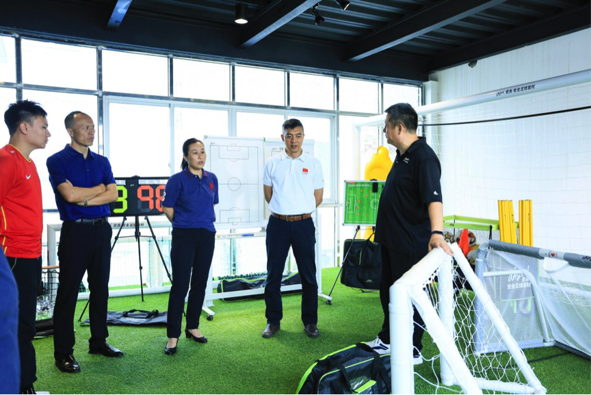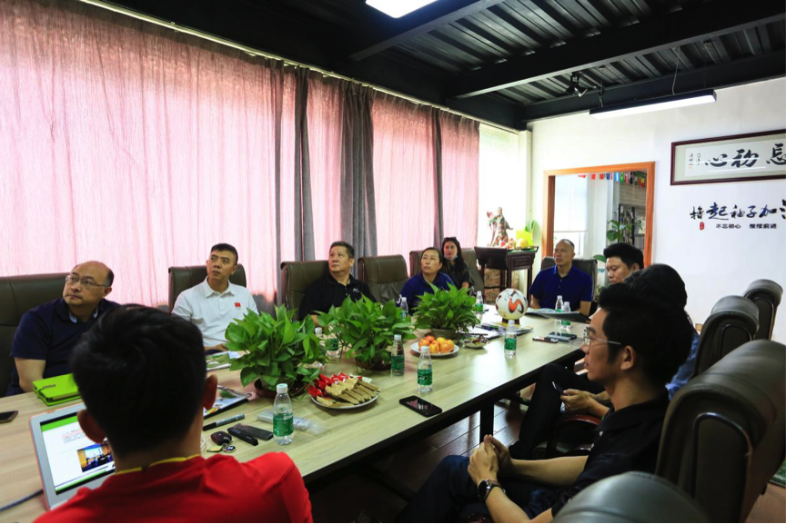 近日,廣東省體育局體育產(chǎn)業(yè)與科教宣傳處處長庾偉健、副調研員朱志剛,省體育局青少處副處長羅茜、廣東省足球協(xié)會副秘書長席兵等一行到中國足協(xié)·中國之隊足球器材服務商——“愛高體育”總部進行調研,愛高體育董事長梁廣仁、運營總監(jiān)梁嘉華、愛高孵化足球管理咨詢項目共鳴體育聯(lián)合創(chuàng)始人曾祥禮介紹了企業(yè)發(fā)展及產(chǎn)品生產(chǎn)等情況。