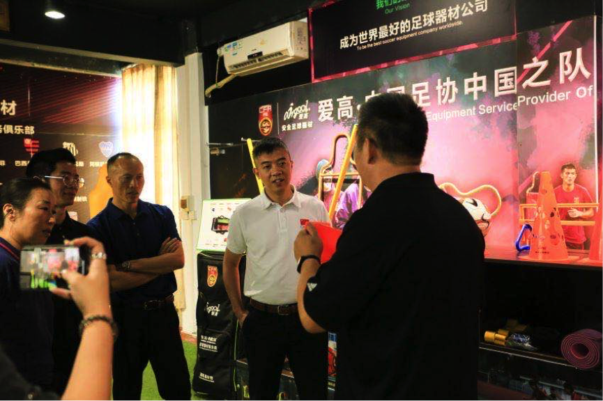調研組一行在參觀了愛高體育的專業(yè)足球器材展廳,對愛高旗下職業(yè)足球隊器材系列、校園足球器材系列、幼兒足球器材系列、家用足球器材系列等全系列產(chǎn)品進行了全面而詳細的了解后,充分肯定了愛高體育在足球器材研發(fā)和應用方面的深厚積累。