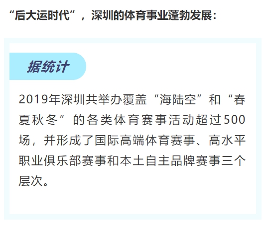 在深圳經(jīng)濟特區(qū)建立40周年之際,深圳已經(jīng)是每年舉辦超過500場賽事的體育賽事之城。現(xiàn)如今,站在新起點的深圳,正向著打造國際體育賽事之都的目標(biāo)邁進。
