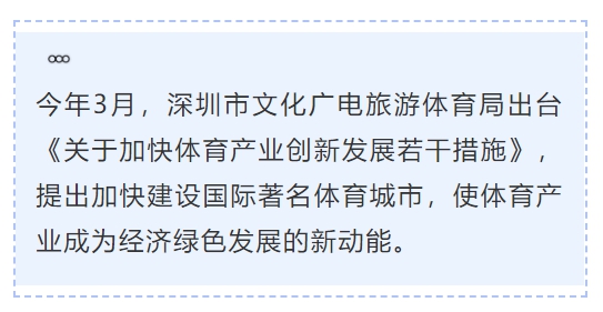 去年8月,《中共中央國務(wù)院關(guān)于支持深圳建設(shè)中國特色社會主義先行示范區(qū)的意見》正式發(fā)布,其中指出:“支持深圳舉辦國際大型體育賽事和文化交流活動,建設(shè)國家隊訓(xùn)練基地,承辦重大主場外交活動?!?/p>