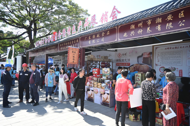 除了感受僑批文化,參與本站賽事活動的人還能全方位體驗“潮人潮品”,感受“潮味”十足的文旅盛會。賽事活動期間,賞潮劇、潮州音樂、功夫茶藝,參觀、體驗鐵枝木偶、核雕、大吳泥塑、毛筆、木雕、嵌瓷、推光金漆畫、制茶技藝及壺藝制作等潮州非遺,現(xiàn)場還有潮派建筑模型展示、大美潮安及綠美潮安圖片展覽、潮州美食特產(chǎn)展銷,此外潮安區(qū)書法家現(xiàn)場“送?!保碇叛b扮演各種狀元、書生、武士等角色的演員穿梭于龍湖古寨的“三街六巷”……潮州戲劇、音樂、工藝、民居、飲食、特產(chǎn)等“潮味”十足的內(nèi)容讓人全方位體驗潮州文化的獨有韻味。