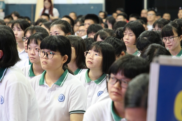 面對(duì)高考,老師們傾囊相授,傾心相伴,與同學(xué)們攜手共進(jìn),全力以赴。當(dāng)晚,臺(tái)上是老師家長傾情寄語;臺(tái)下是同學(xué)們熱烈回應(yīng)。相信在接下來的300天里,中山二中2020屆的全體師生們信心百倍,以手中之筆為劍,在明年高考考場上,激揚(yáng)文字,指點(diǎn)江山,一朝試鋒,六月奪冠。