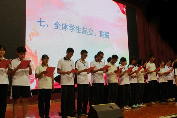 大會(huì)的最后,全體學(xué)生進(jìn)行倒計(jì)時(shí)300天宣誓,并為高三各班頒發(fā)倒計(jì)時(shí)牌。