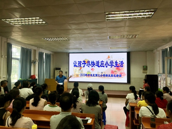 家長是孩子的第一任老師,開發(fā)區(qū)第三小學(xué)十分注重家校共建,家校合作。2019年8月29日,一年級新生入學(xué)報(bào)到第一天,學(xué)校就開展班級家長會、校級家長會。