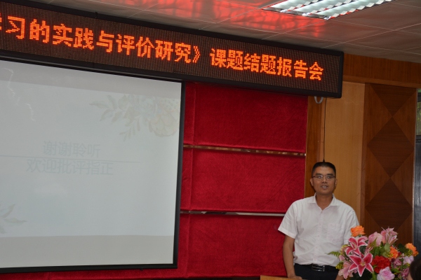報告會的第一個環(huán)節(jié)是與會專家和領(lǐng)導(dǎo)審閱相關(guān)文字資料。緊接著,何校長就《小學(xué)生語文展演學(xué)習(xí)的實踐與評價研究》課題作了結(jié)題報告。在報告中,他從課題研究價值、研究目標(biāo)和內(nèi)容、課題研究方法以及課題研究的成果與成效這四個方面對課題進(jìn)行了全面、細(xì)致的梳理、回顧、總結(jié)和反思。報告會的第三個環(huán)節(jié)是與會專家對課題提出指導(dǎo)建議。專家們對課題選題的意義、課題研究成員的研究熱情與辛勤付出以及豐碩的研究成果給予了充分的肯定,并從調(diào)查問卷題目的設(shè)置、調(diào)查數(shù)據(jù)的科學(xué)與有效性等內(nèi)容對課題存在的問題給予細(xì)致的指導(dǎo),并鼓勵在場所有的教師繼續(xù)以嚴(yán)謹(jǐn),認(rèn)真,科學(xué)的態(tài)度從事教學(xué)科研,令在場的老師獲益良多。最后,何校長作表態(tài)性發(fā)言,感謝專家們的肯定,感謝市鎮(zhèn)對課題研究的大力支持,感謝課題組成員的辛勤付出,他還表示,盡管課題已經(jīng)結(jié)題,但是績西教師對于展演學(xué)習(xí)的研究還將繼續(xù)深入。