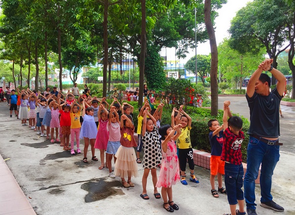 一年級的教師領(lǐng)著學(xué)生認(rèn)識教室和衛(wèi)生間的位置,教會學(xué)生不同情況下的坐姿,例如:靜息時、聽講時、準(zhǔn)備發(fā)言時等。細(xì)致地給每一位學(xué)生排行進(jìn)路隊時的位置和班上的座位,然后帶領(lǐng)學(xué)生們練習(xí)路隊和小口令,深入淺出地、熱情滿滿地教育著孩子們。