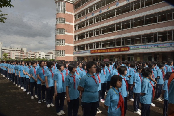 9月2日上午,在三鄉(xiāng)鎮(zhèn)初級(jí)中學(xué)新學(xué)期開學(xué)典禮上,該校組織了“我為祖國升國旗”活動(dòng)。全校1600余名師生參加本次升旗活動(dòng)。