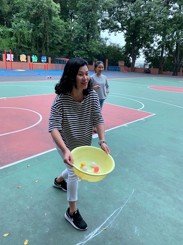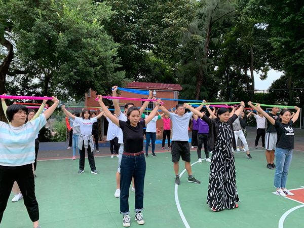 活動(dòng)的主要內(nèi)容是健康常識分享、趣味運(yùn)動(dòng)。首先由張蓉老師帶領(lǐng)老師們進(jìn)行肩頸護(hù)理知識分享。張老師邊講解,邊示范,全體老師也積極認(rèn)真地模仿練習(xí),其樂融融;接著開展了趣味運(yùn)動(dòng),以級組為單位參加活動(dòng)。裁判員是周萌、陳逗彬、祝艷萍、何東隆4位老師,他們對游戲規(guī)則解說一清二楚。例如,我愛轉(zhuǎn)圈圈,每組5人參加;摸石過河,每組6人參加;探險(xiǎn)之旅,每組8人參加;拋繡球,全員參與,限時(shí)3分鐘;企鵝下蛋,每組12人參加。然后進(jìn)行精彩紛呈的活動(dòng),大家團(tuán)結(jié)協(xié)作,盡情參與。經(jīng)過角逐,最后根據(jù)每組獲得的成績進(jìn)行統(tǒng)計(jì),評出一、二等獎(jiǎng)各3個(gè)級組。大家收獲了累累碩果,開心愉悅,其樂無窮。