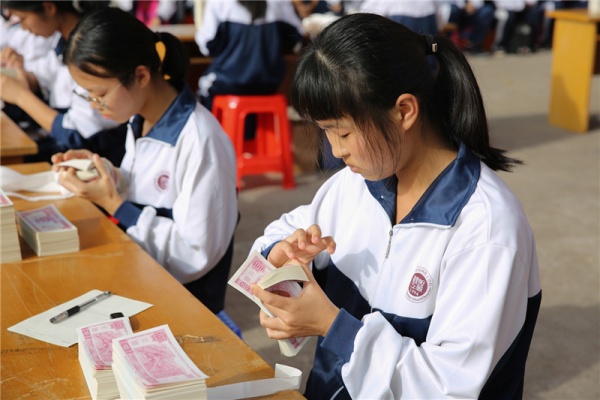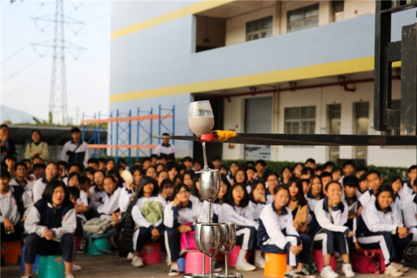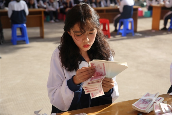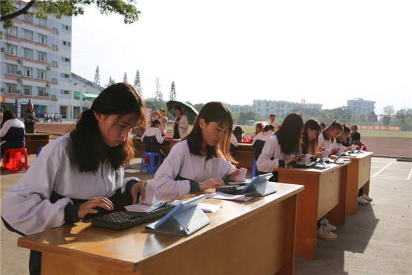修德載志當(dāng)自強,精技渡遠(yuǎn)做棟梁。商貿(mào)專業(yè)合唱小分隊的學(xué)生以一首《鄉(xiāng)渡遠(yuǎn)方》拉開序幕,來自四方的莘莘學(xué)子以歌唱校歌的形式表達(dá)了對鄉(xiāng)渡校園文化的詮釋。接著物流服務(wù)與管理專業(yè)的學(xué)生展示精致嫻熟的叉車作業(yè)技能,四名同學(xué)分工合作,對貨物進行層層疊放,喻意“步步高升”。國際商務(wù)專業(yè)(會計方向)的學(xué)生緊接著出場,13名女生,以花式多樣的手法、令人眼花繚亂的速度,分別以單張單指點鈔法及多指多張點鈔法展示了她們勤學(xué)苦練多年的熟練點鈔技能,贏得場外觀眾的陣陣掌聲。
