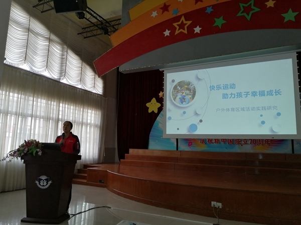 18日上午,學(xué)員們現(xiàn)場觀摩并聆聽了中山市政法幼兒園郭俊清園長分享課題研究“幼兒園戶外體育區(qū)域活動”的思路與方法;下午,現(xiàn)場感受“基于兒童視角的主題探究課程”園本教研,并聆聽了李文華園長的主題報告。