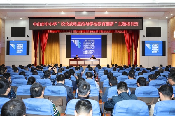 12月14日上午,中山市中小學(xué)“校長(zhǎng)戰(zhàn)略思維與學(xué)校教育創(chuàng)新”主題培訓(xùn)在中山市委黨校香山堂舉行。教育部中小學(xué)名校長(zhǎng)領(lǐng)航工程江蘇基地首席專家、江蘇省教育廳教師教育指導(dǎo)委員會(huì)委員嚴(yán)華銀教授為全體學(xué)員做了《轉(zhuǎn)型:走向2035的中國(guó)校長(zhǎng)》的專題講座。市教育工委副書記廖誠(chéng),市教體局師資科科長(zhǎng)黃慶財(cái)出席本次活動(dòng),活動(dòng)由中山市委黨校教育行政管理教研室主任周立勝主持。全市中小學(xué)校長(zhǎng)、市校長(zhǎng)工作室全體成員、市初中青年干部“3680”種苗工程研修班學(xué)員以及市第十七期小學(xué)校長(zhǎng)任職資格培訓(xùn)班全體學(xué)員共450余人參加了此次培訓(xùn)。