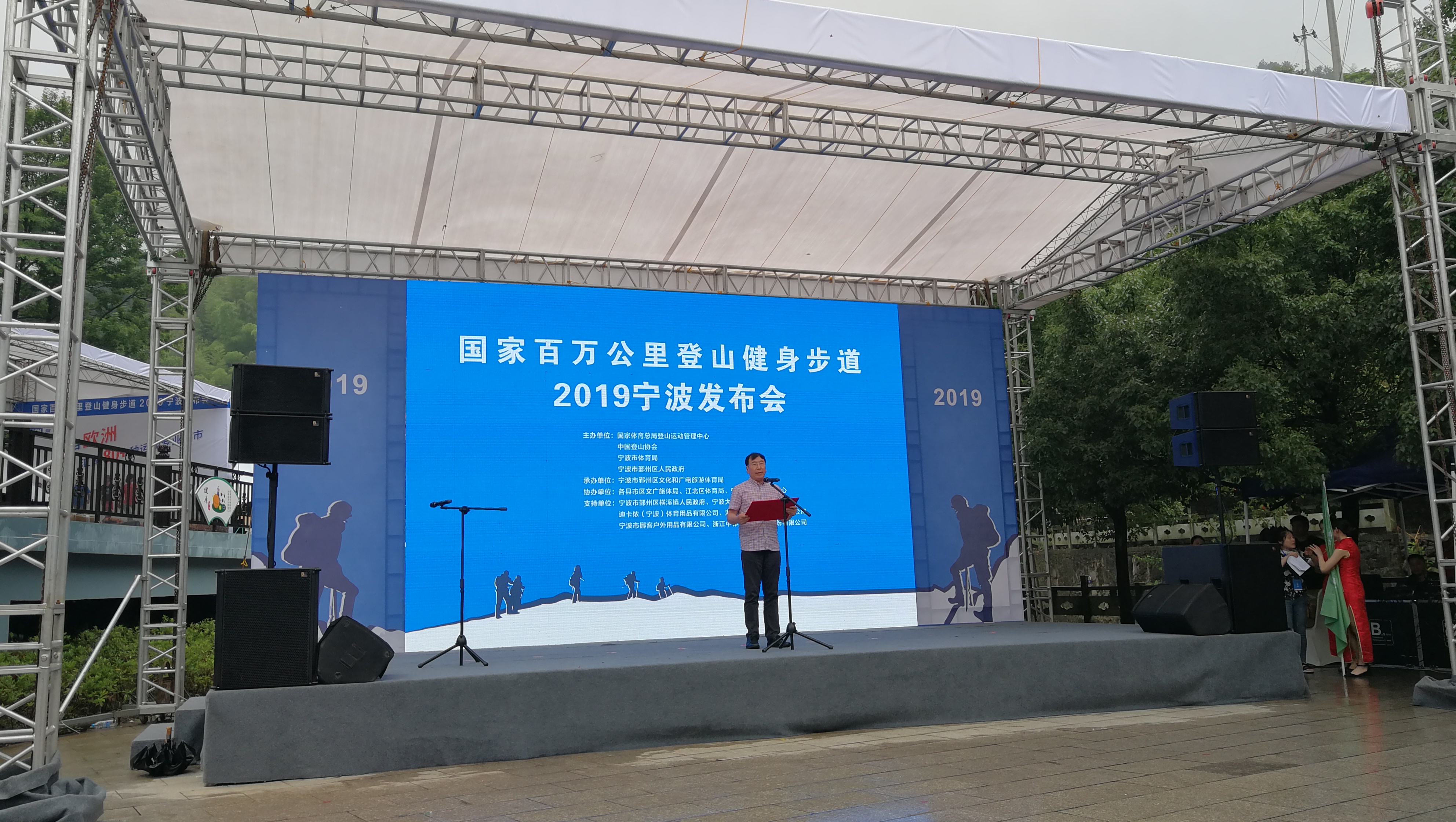 國家體育總局登山運(yùn)動管理中心主任、中國登山協(xié)會主席李致新,寧波市副市長許亞南、國家體育總局登山運(yùn)動管理中心經(jīng)營開發(fā)部主任丁祥華、浙江省體育局群體處處長廖洪鈺、寧波市政協(xié)教科衛(wèi)體委副主任何琪得、寧波市體育局局長張霓、寧波市體育局副局長賀昌元、寧波市體育局副局長徐健、寧波市鄞州區(qū)人民政府副區(qū)長卜明長等國家、省、市、地方相關(guān)領(lǐng)導(dǎo),以及全大市近千名登山健身運(yùn)動愛好者參加了本次發(fā)布儀式。今年的主題是“行走千里云道,倡導(dǎo)科學(xué)健身”。